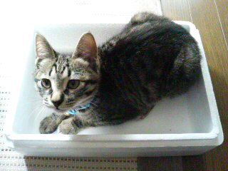 日向にあった発砲スチロールの箱をみつけて入り込んでいる。
