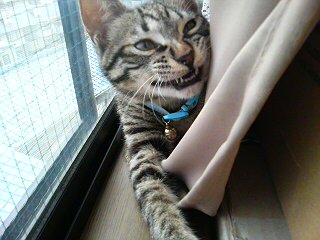 まさかと思い三階の窓ぎわのカーテンを開けると!居ったやないか!