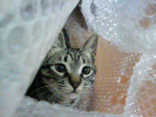 久しぶりやわ~!エアーキャップのロールの中でジタバタ遊び。