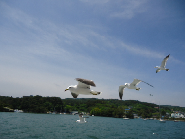 えびせんを海面に撒き投げたり、ウミネコに手渡すと見事なキャッチ!面白かったぁ!!