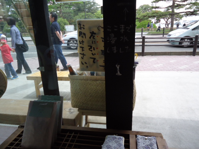 お土産もの屋さんの店内にも、国宝『瑞巌寺』にも、浸水の記録が残されている。