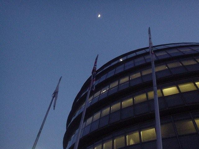 早速、徒歩で向かったのはタワーブリッジ近くのテムズ川のベイエリアです。 アルマジロの背中のような外観のロンドン市役所。 2012年のオリンピック旗がはためいていました。