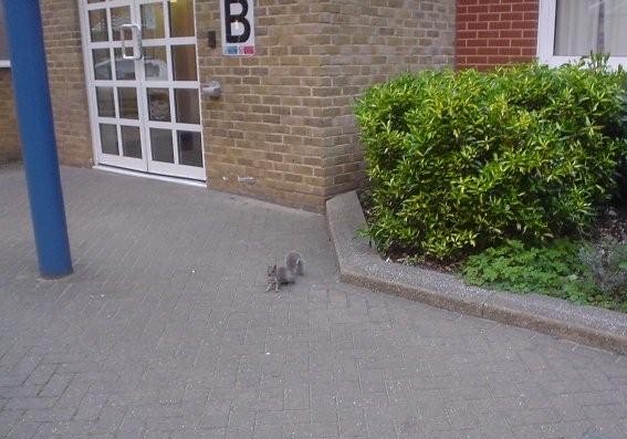 ロンドンに到着して元気よく出迎えてくれたのは学生寮の中庭に跳び出してきたリスでした。
