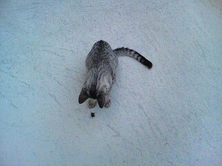 ベランダでカナブンとお戯れ。 ニャンコにボール扱いされたなら、じっと耐えるしかない。