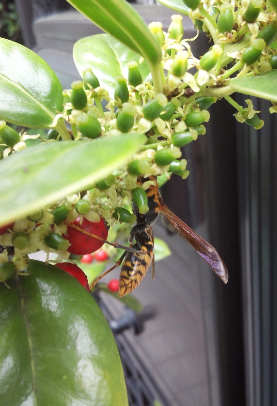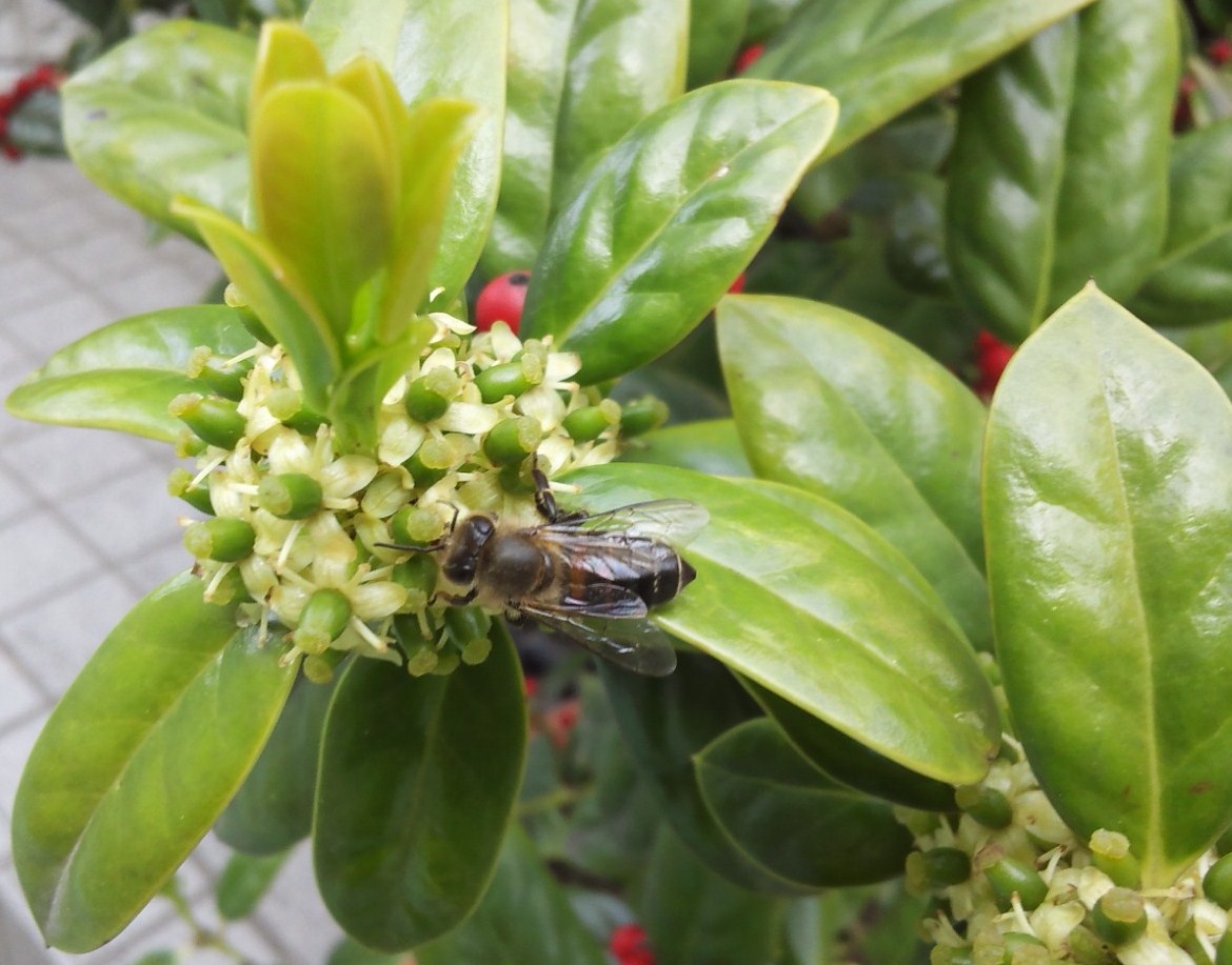 西洋ヒイラギの花にはミツバチ!ブンブン♪