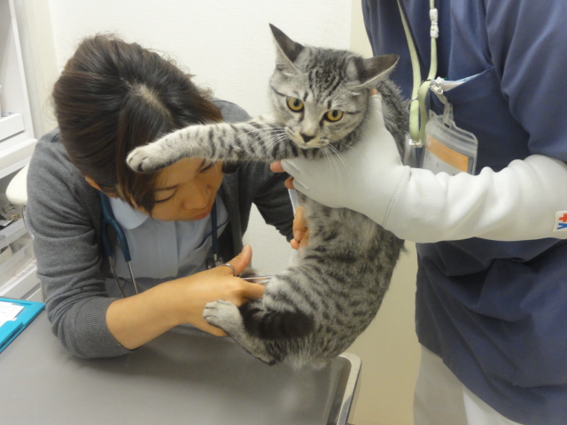 お世話になっている獣医さんのところで避妊後の抜糸。