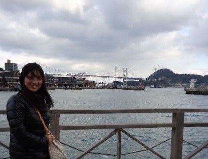 強風ですが、後ろに見えますのは九州の門司へと架かる関門大橋。