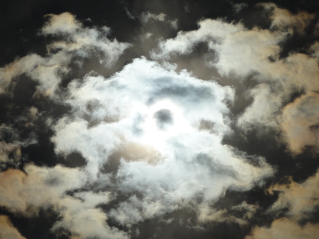 このチャンスにカメラで撮った・・おぼろげながら太陽の輪郭が見える。