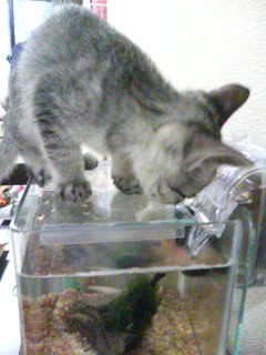 白めだかトリオのピ〜ンチ!猫の視線が狙ってますよ!