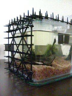 後日、白めだかの水槽はこんなパンクスタイルに武装しました。