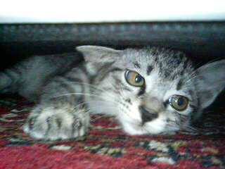 わずか5cmのソファの下にもぐったものの・・行き詰る、身動きできまへん。